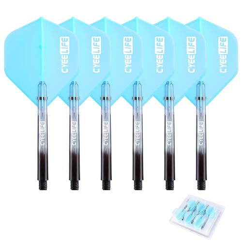 【送料無料】CyeeLifeダーツとPCヒンジセット、金属Oリング12個付き,ダーツパーツ、6点セット (ブラック, 48mm) (青, 48mm)